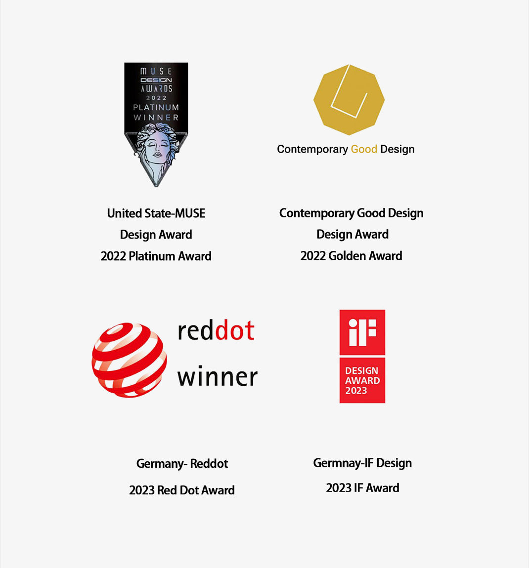We have won awards in all lndustrial Design Competitions, including many international design awards like the Oscars in the desian industry, The Red Dot Award, and the IF Design Award, and many top honors in many competitions..